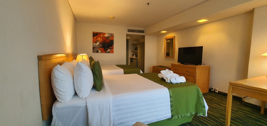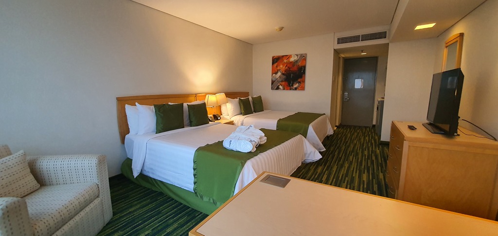 Habitación ejecutiva - 2 camas dobles • máx. de huéspedes: 4 adultos Divida los costos de viaje con un colega durante su viaje corporativo a la Ciudad de México en esta habitación ejecutiva. Además de todos los servicios estándar, como el servicio a habitaciones las 24 horas, puede disfrutar de un check-in anticipado (sujeto a disponibilidad). Un desayuno americano incluido le ayudará a energizar su día.